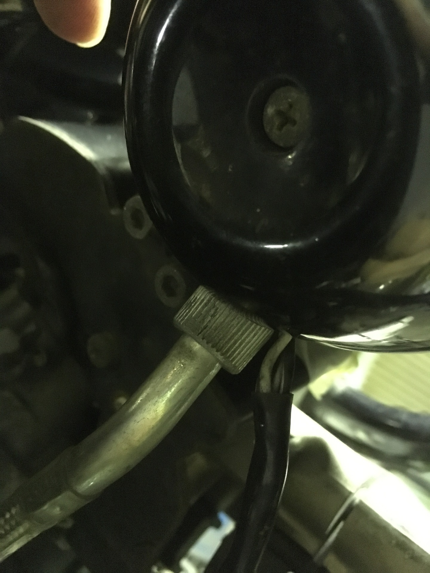 メーターフードを外すには裏側のM5キャップボルト×2とタッピングねじを外します