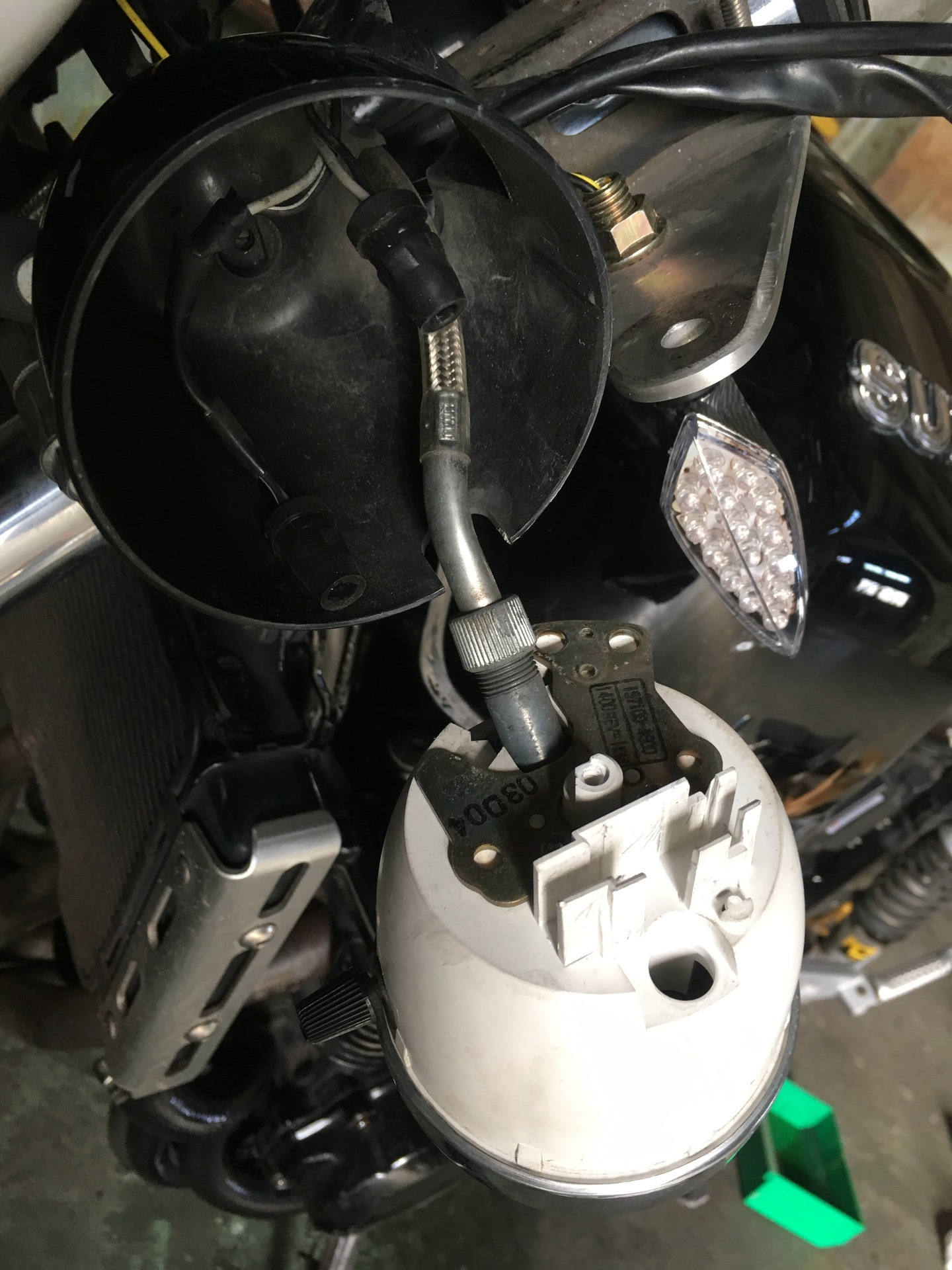 純正と似たようなものを付けるのもアリですが、ハロゲンだとどうしても如何にも古いバイク…と言った印象になりますので明るいLED球に交換することに