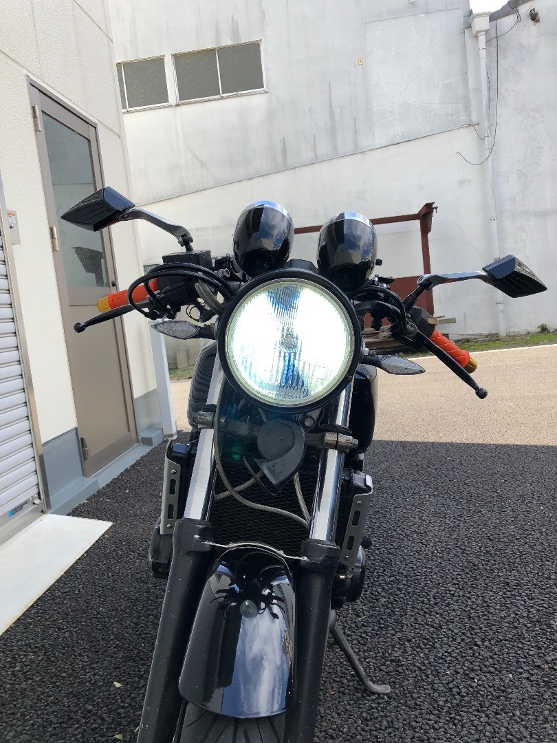 このバイクは純正のレンズなので、マルチリフレクターレンズに変えればもうちょっと具合が変わってくるのかな?