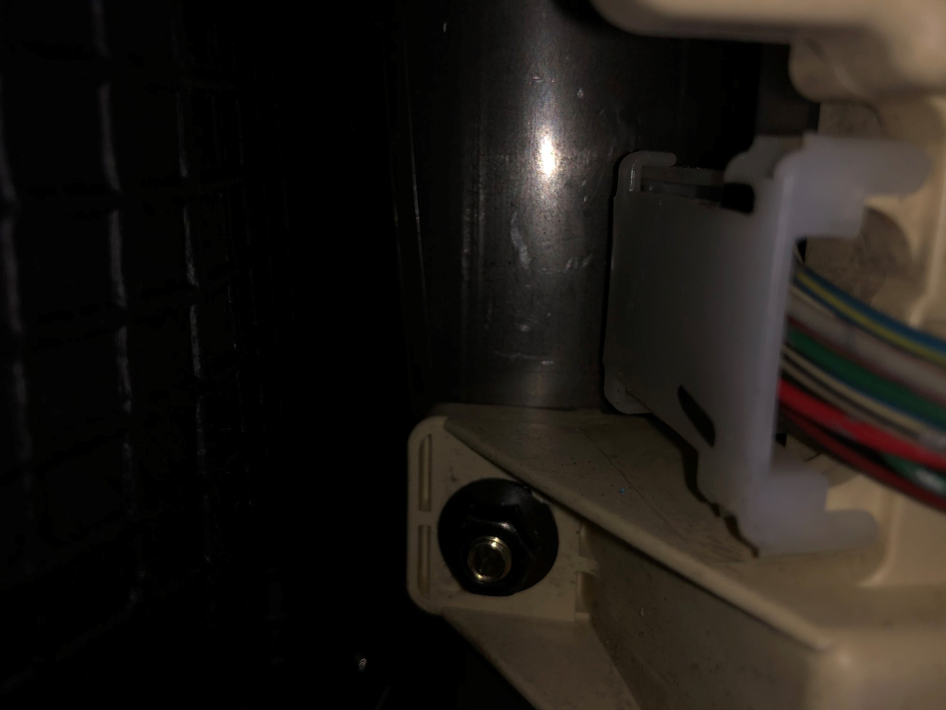 んでもう一つ右側に内装の裏にボルトが隠れていますので、これも緩めれば配線が許す限りジャンクションボックスを動かすことができます。