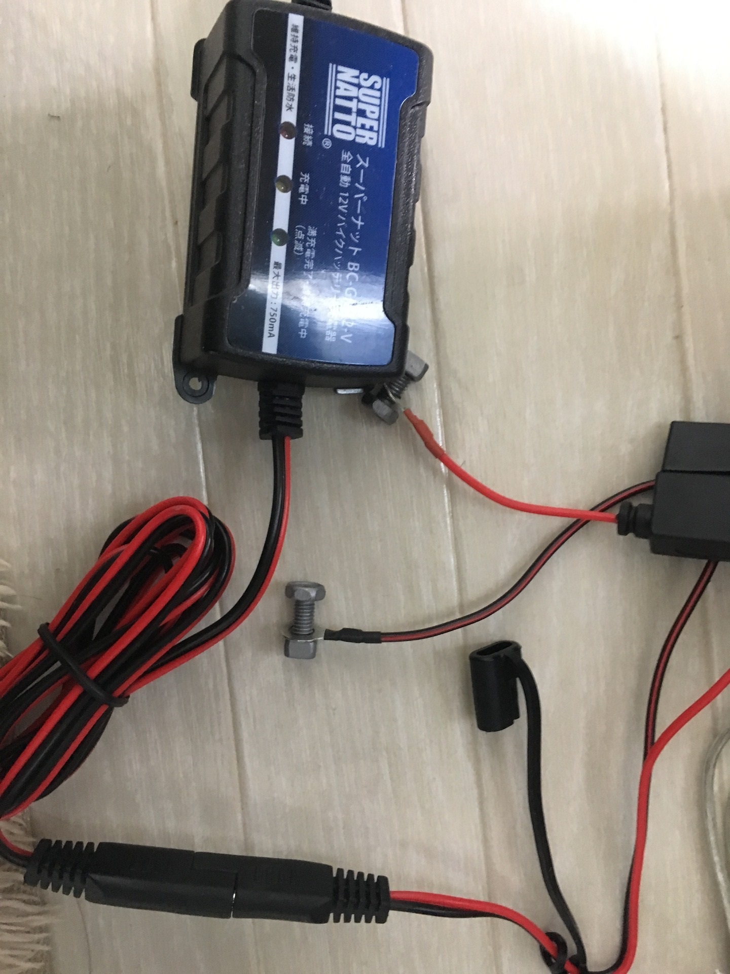 車両にバッテリーを乗せる際にこれをつけておくと、車両から降ろさずにバッテリーが