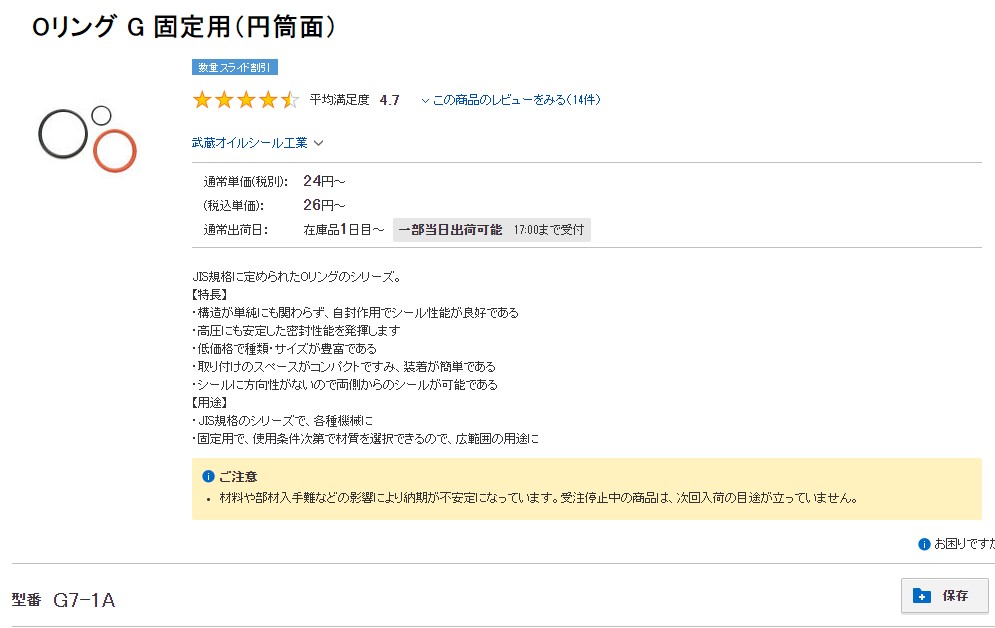 ネットでググってみるとどうやらG規格というサイズのoリングっぽい