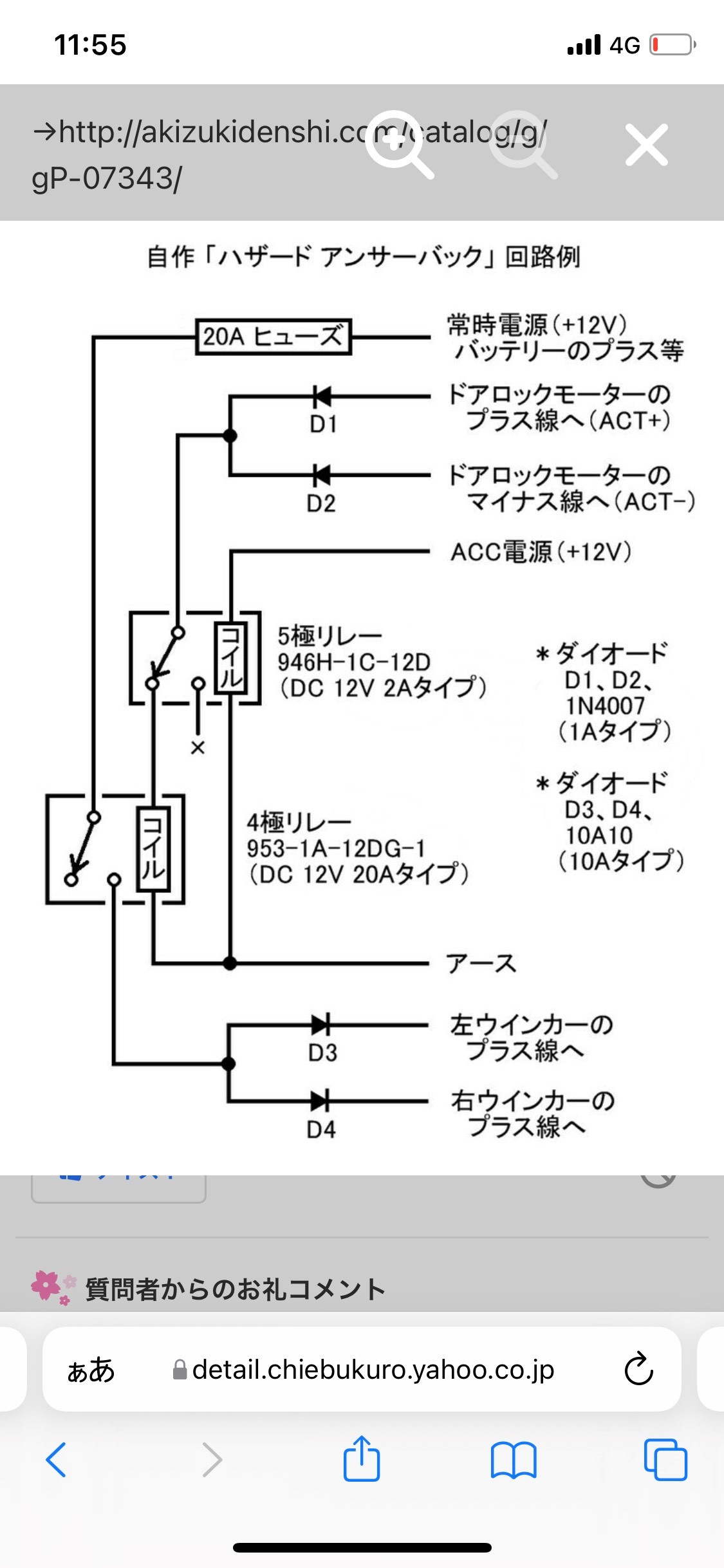 というより先に結果から言うと、画像の通りにリレーやら配線やらを繋げていけばほぼほぼ無事にハザードアンサーバックが動作しました