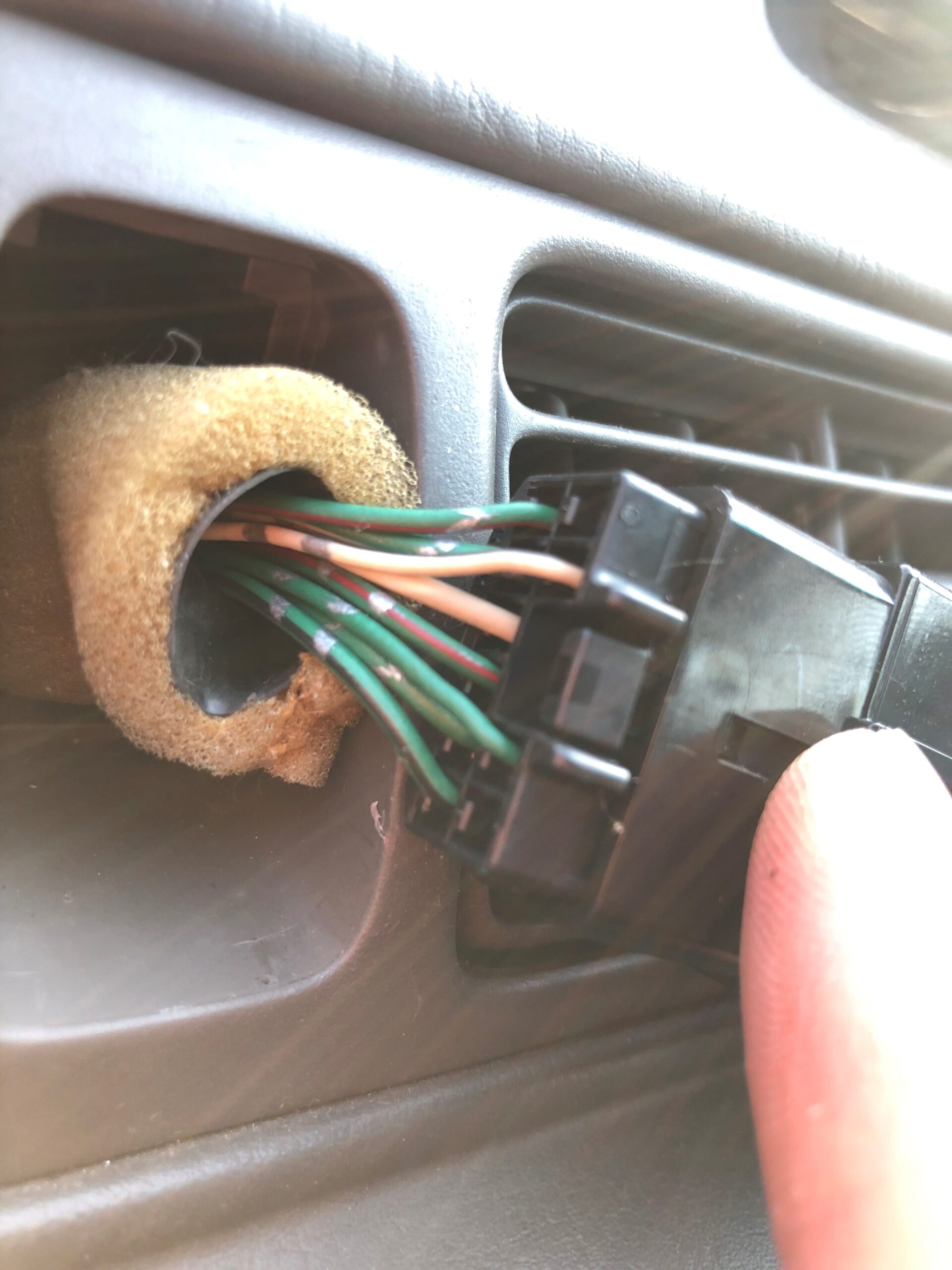 ハザードスイッチは裏から押すとぽこっと簡単に取れたので作業しやすいところまで引っ張り出して、割り込みカプラーを使ってウインカーと接続します